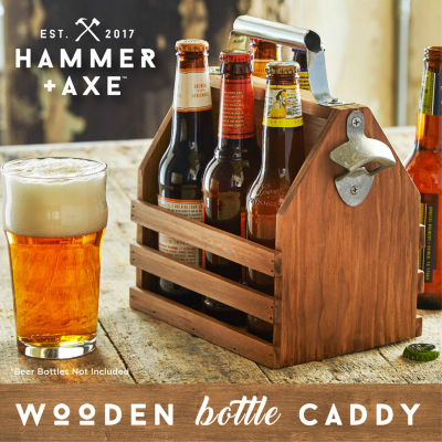 Hammer Axe Wooden Bottle Caddy Six Pack Beer Carrier With Built In Metal Bottle Opener Jcpenney